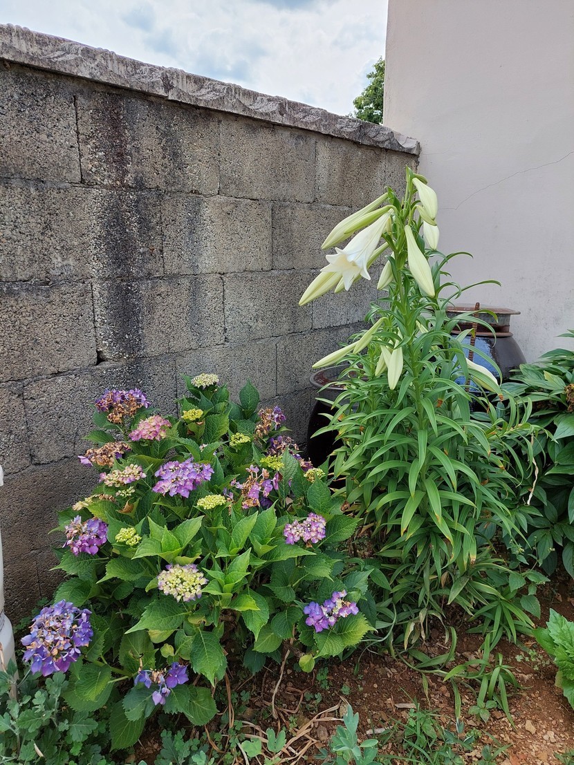 시골집 마당에 백합이 너무 예쁘게 폈어요