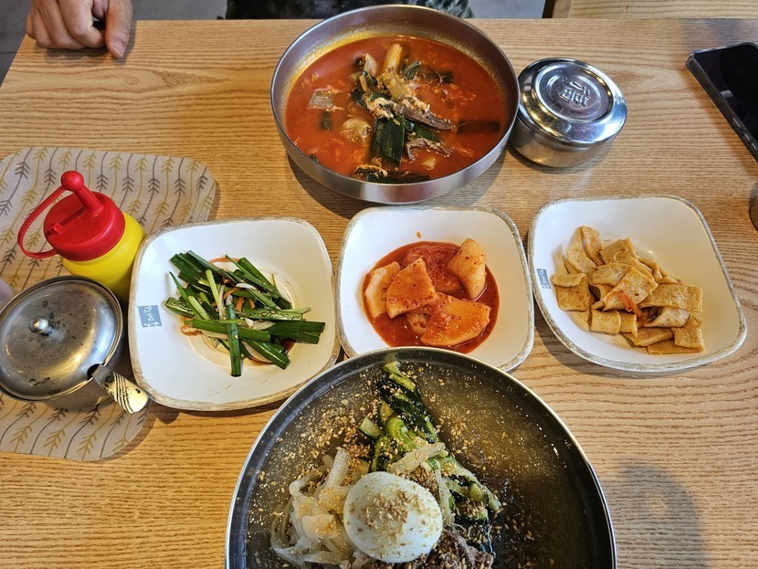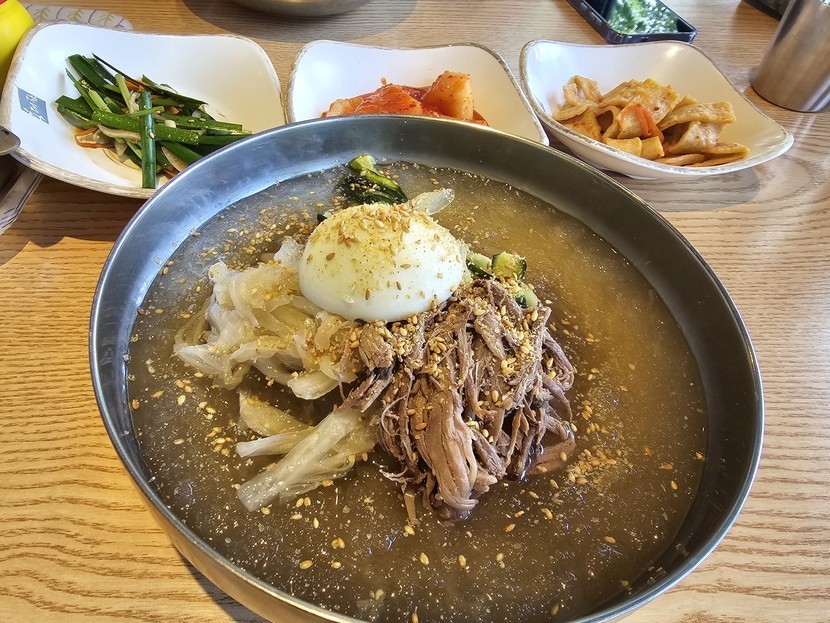 어제 점심 시원한 냉면과 뜨끈한 육개장