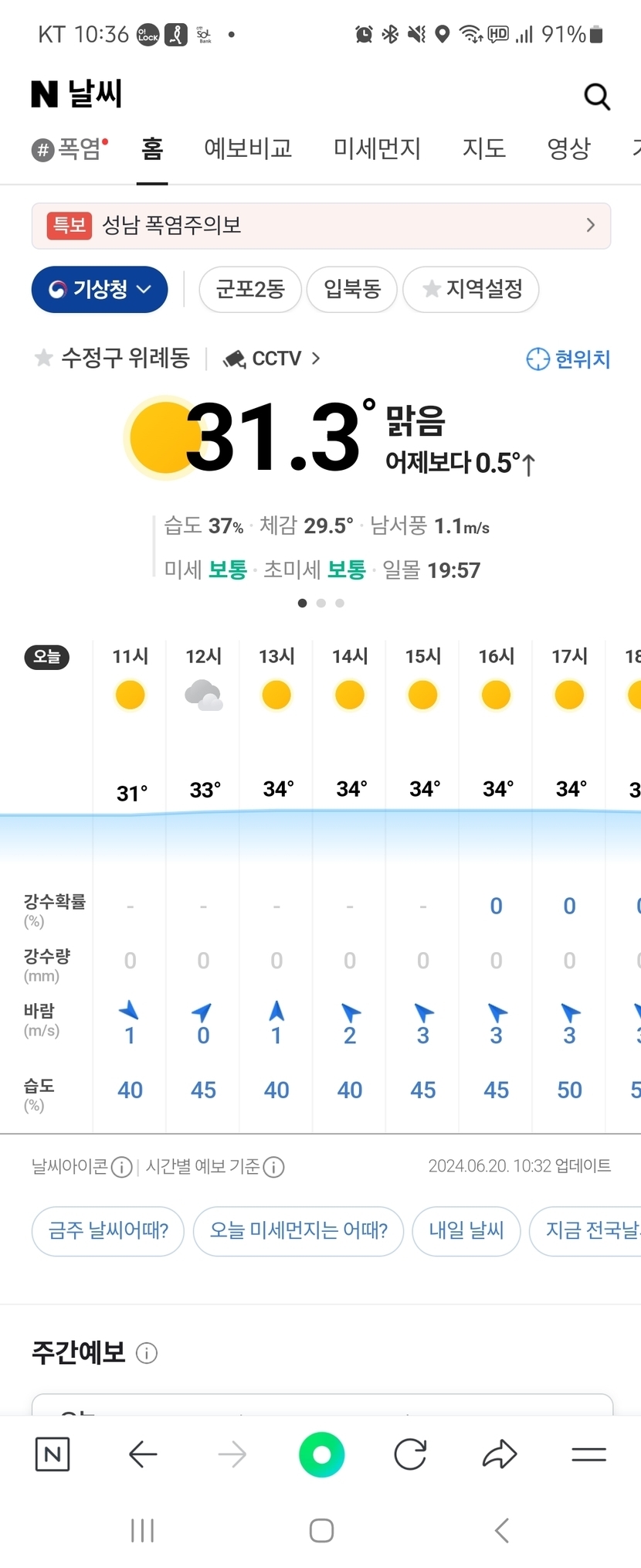 다음주는 비가 많이 올거 같아요