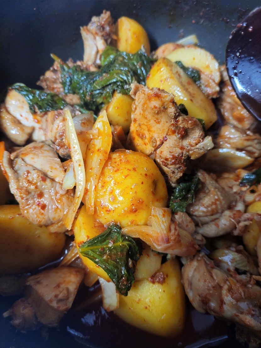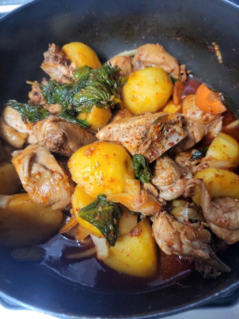 24.06.25 913 읽음 매콤한 닭뽁음탕 초록부자 구독하기 72 78 콘텐츠의 수익 42 울 삼식이님이 좋아하는 깻잎 듬뿍넣은 매콤한닭뽁음탕 시장 닭집에서 큰놈으로 12000원구입해 미리 진간장 국간장 후추 소금 다진생강다진마늘 설탕 넣어 1시간 숙성시키고 감자 고추장고추가루 넣어 끓여 깻잎 양파 대파 당근 넣어서맛있게 먹었어요 감자가 보슬보슬 맛나요~~ 78 0 / 300 입력
