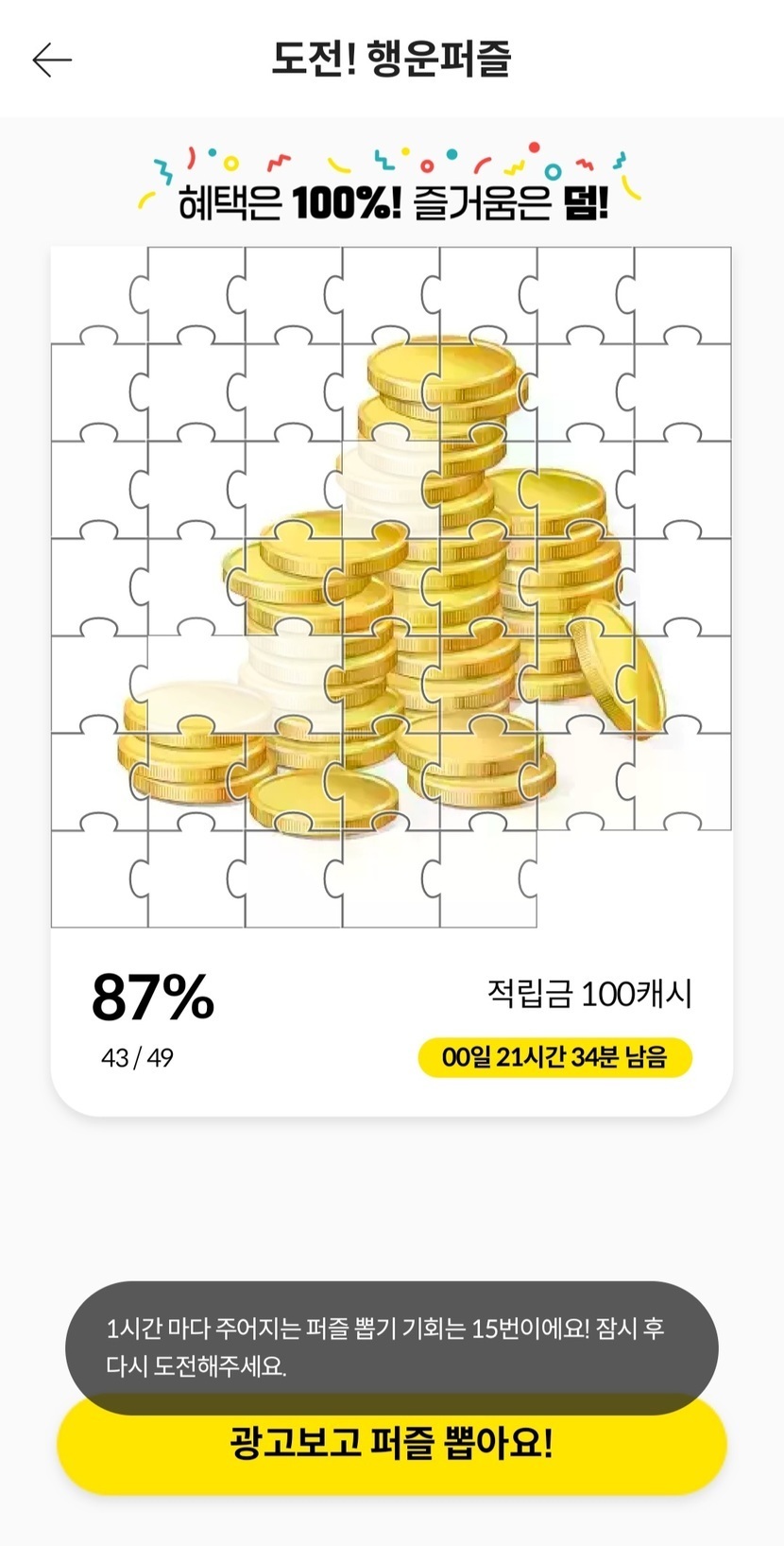 24.06.25 65 읽음 행운퍼즐 100캐시 오늘은 꼭 맞춘다!! 한결같은사람 구독하기 2 6 콘텐츠의 수익 3 어제는 준비 안 해서 놓쳤지만..😭오늘은 꼭 맞춘다!!✊ 6 0 / 300 입력