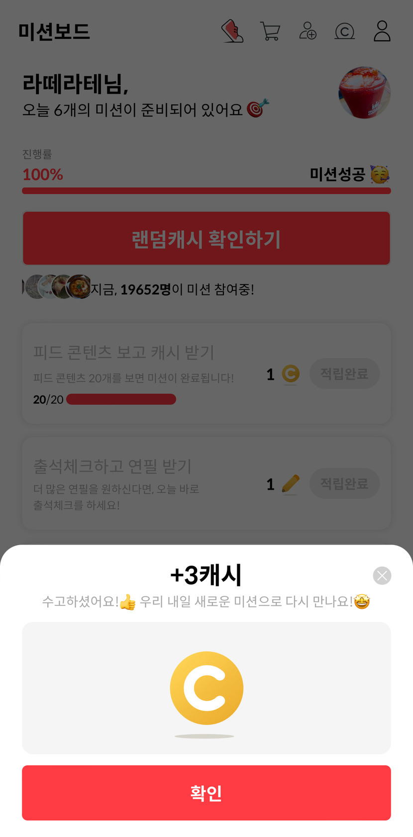 오늘 랜덤캐시