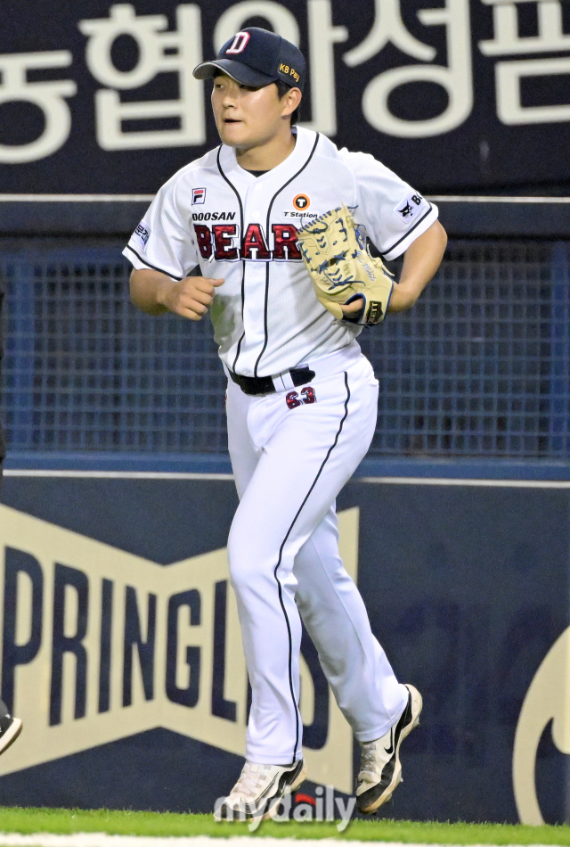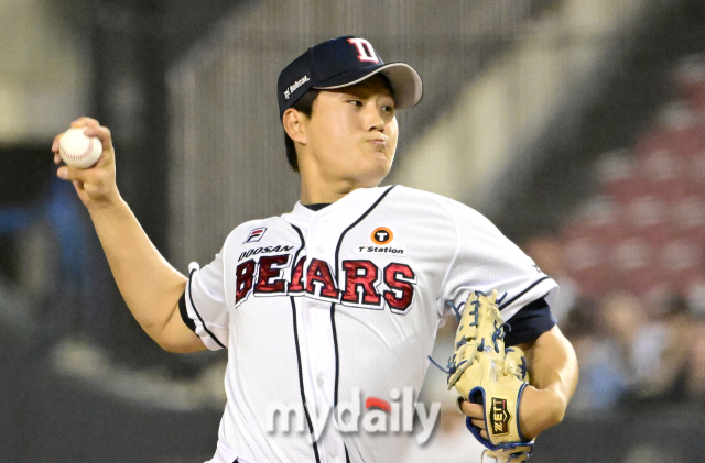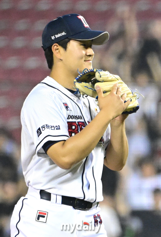 [역대 19세 투수 탈삼진률 1위에 도전하는 두산 김택연 / 잠실 = 유진형 기자 zolong@mydaily.co.kr]
