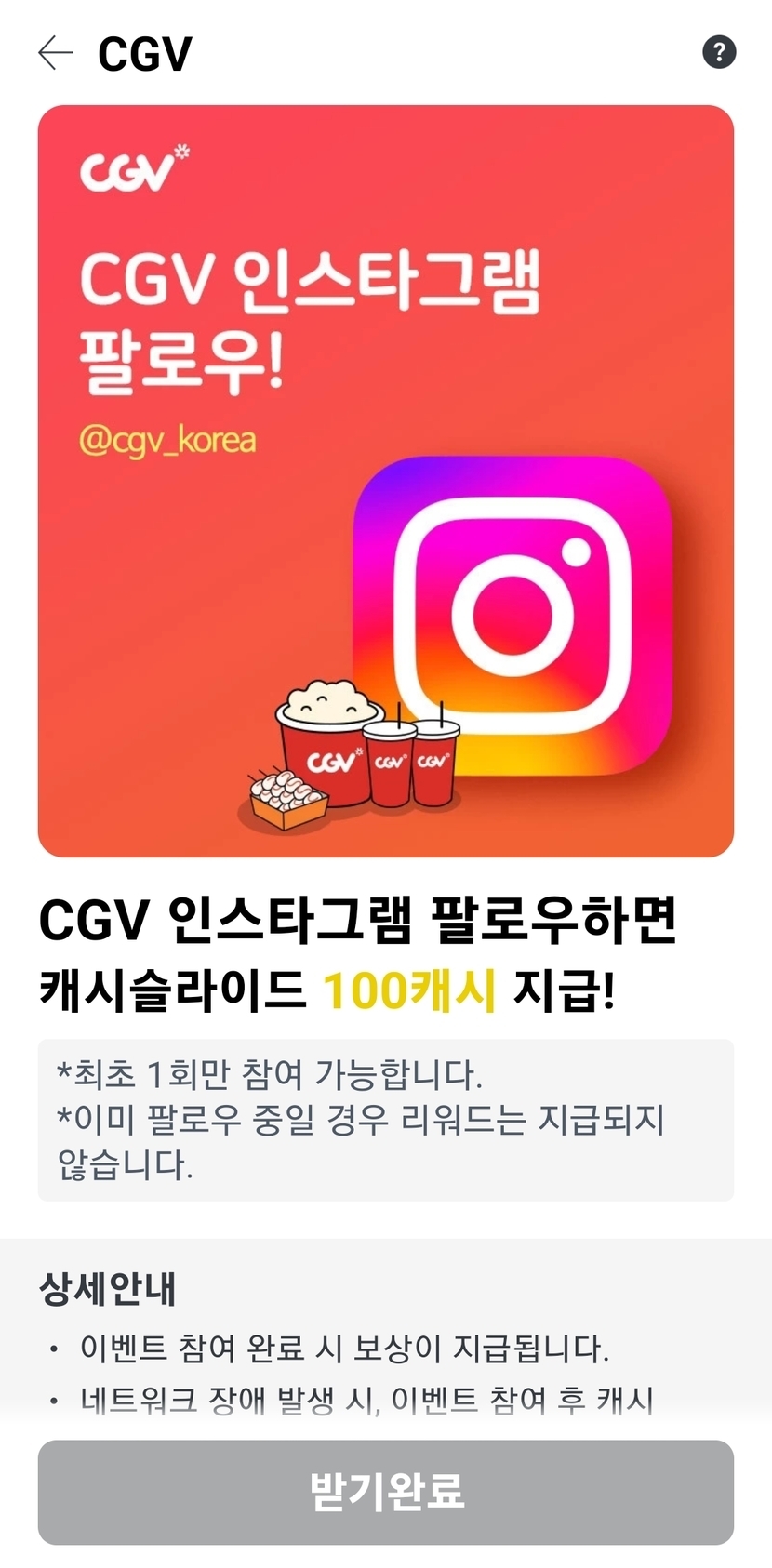 CGV인스타 팔로우적립