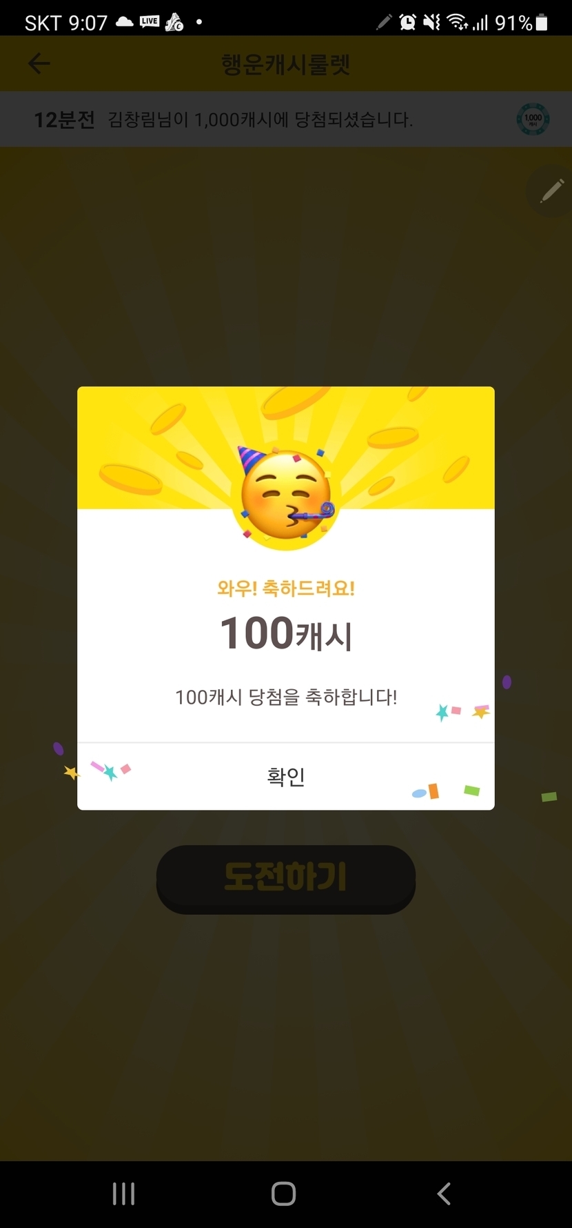 캐시워크 로또 당첨^^