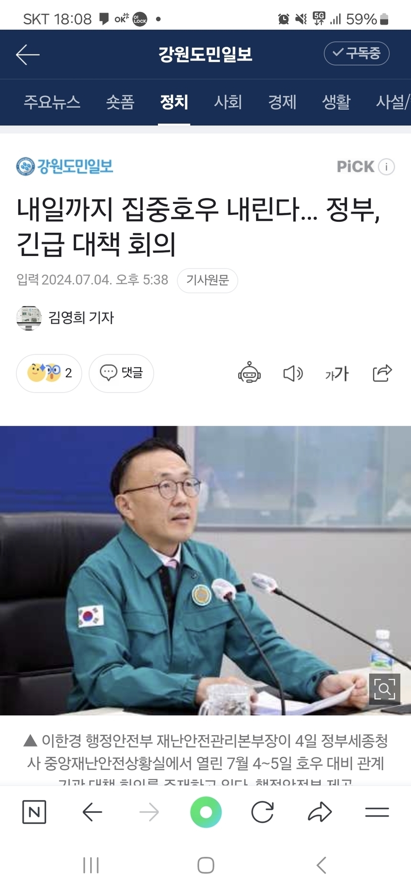 내일까지 집중호우 내린다… 정부, 긴급 대책 회의