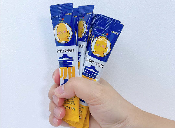 3. 회식, 모임 센스쟁이 등극액상 타입의 스틱형 개별 포장으로 휴대성과 이지컷으로 섭취편의성도 높였다. 1박스에 10포가 들어 있어 나눠 먹기에도 좋으니 귀여운 패키지의 술깨삼을 다가오는 회식, 모임 자리에서 꺼내 함께 즐겨보자. 그날의 ‘회식 인싸’, ‘센스쟁이’ 타이틀은 당신의 것.