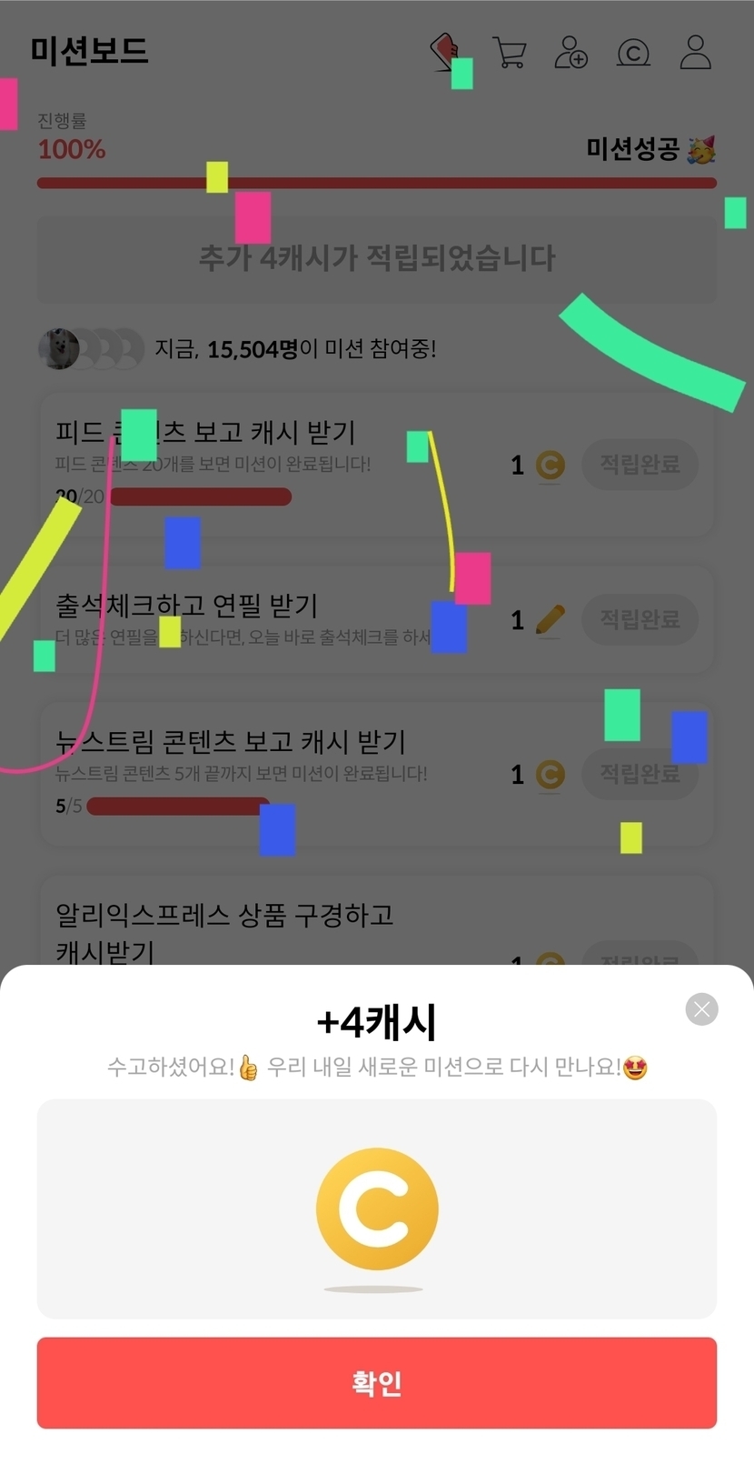 4캐시 됐어요~^^