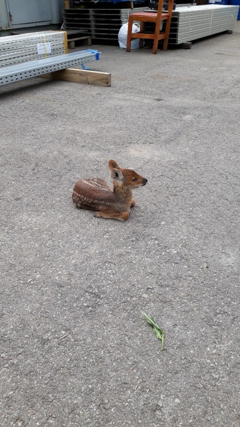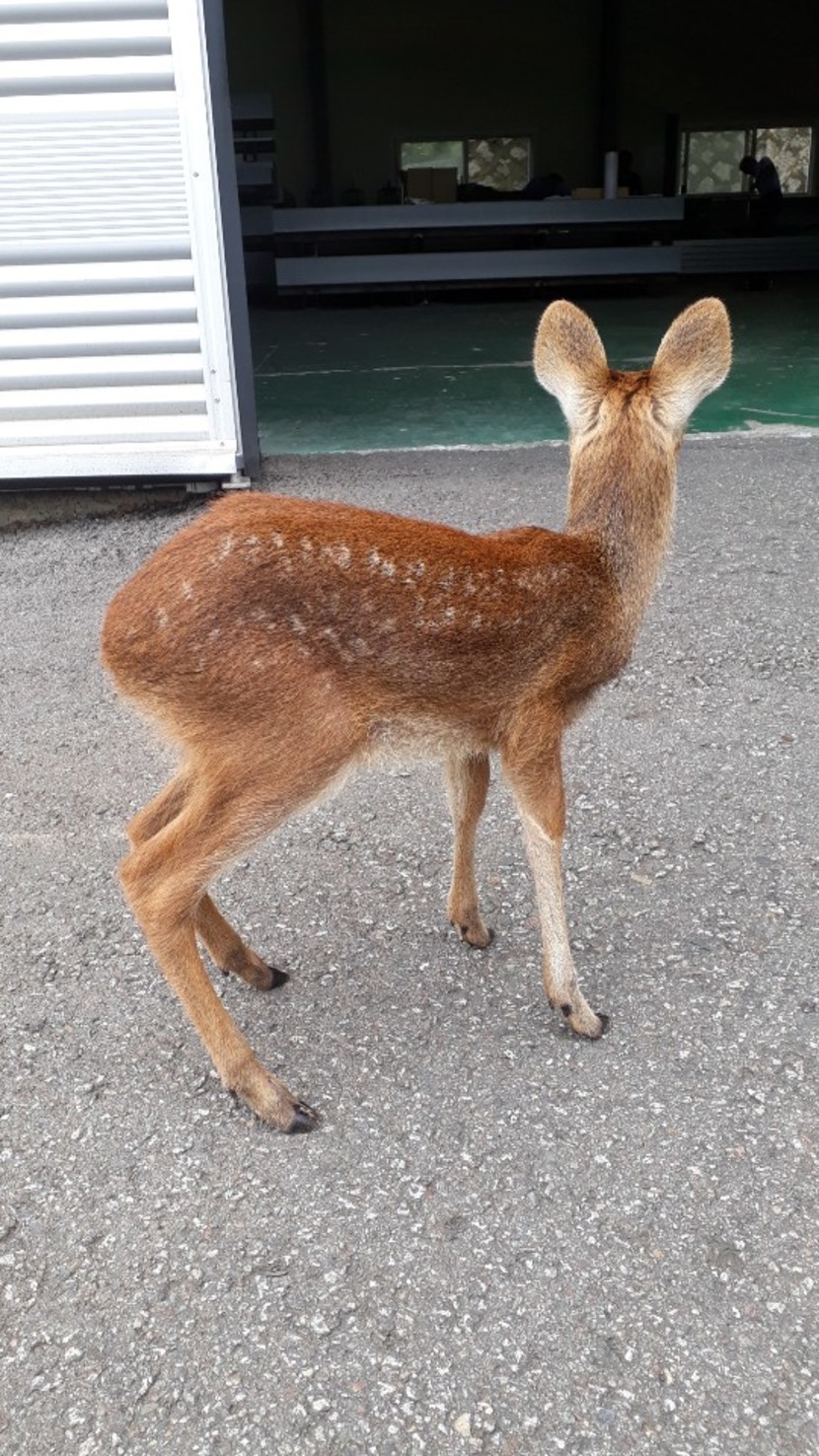 야생고라니 새끼가 찾아왔어요. 불쌍해요.