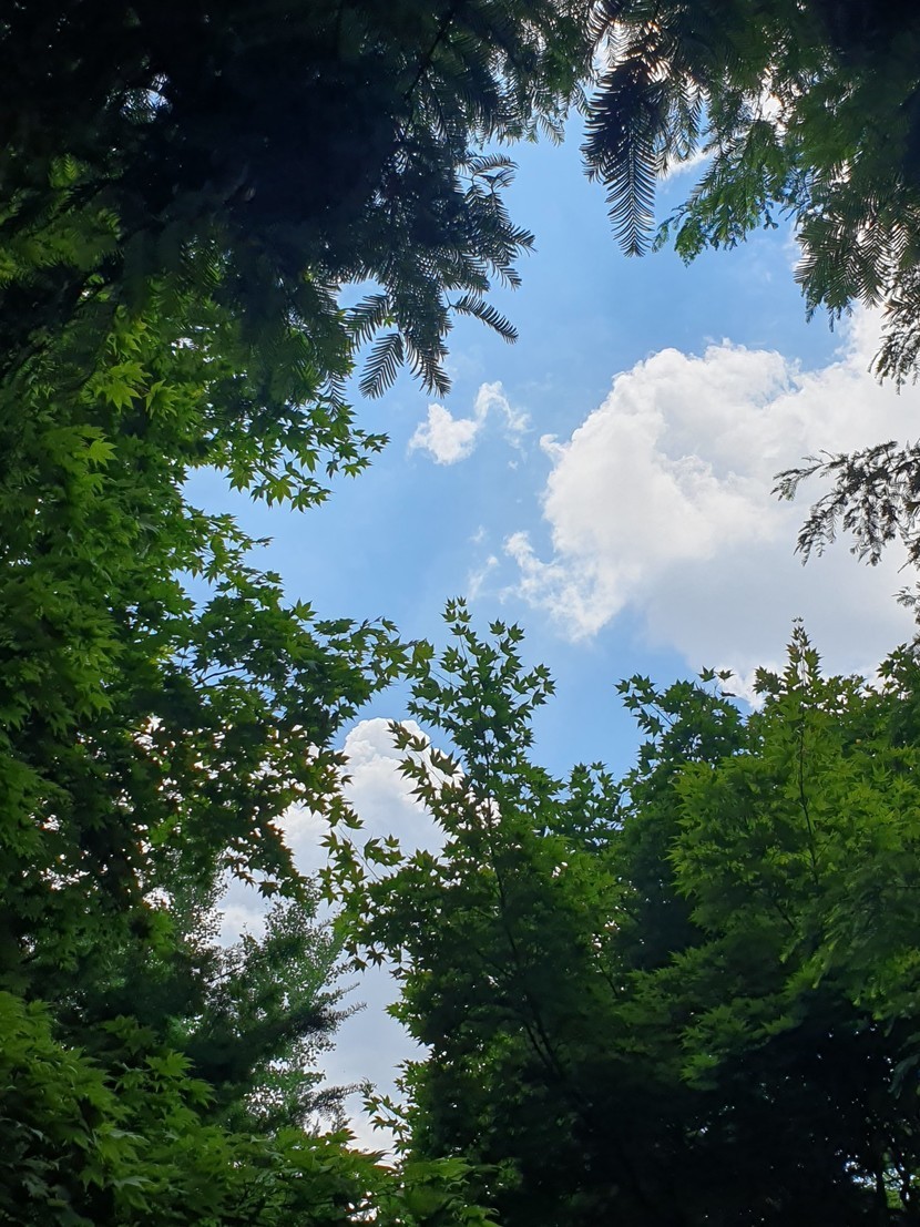 지금 하늘 예쁜 하얀 묵화솜 구름