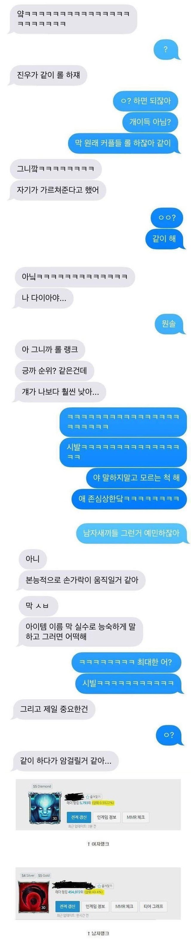 남친이 롤하자고 해서 난감한 여친
