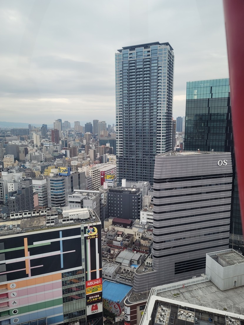 힘들 수 도 있는데 오히려 적응이 되었나 재미있기 시작했다. 여행은 늘 그렇다. 첫 날 설레서 출발해서 도착과 동시에 집에 가고 싶어진다. 둘째날은 어리바리하고 셋째날은 적응해서 다닐만 하며 더 있고 싶어진다. 비온다고 일본이 장마라고 장담하던 사람들을 조롱하듯 날씨는 덥지도 않았고 오히려 흐려서 다니기가 훨씬 시원했다. 어느 여행처럼 마지막날은 쇼핑이였다. 큰 백화점에 그림처럼 빨갛게 커다란 케이블카가 도시를 채웠다. 그걸 타고 맨 꼭대기에 갔을때는 놀이기구를 탄것보다 더 무서웠다. ㅜㅜ 이럴줄 몰랐는데...그러나 무섭지만 도시를 한 눈에 내려다보는 기분은 참으로 놀라운 반전이 있었다. 시내 한복판에 도톤보리에 글리코상이라고 마라톤 아저씨가 있다. ㄱ거기에서 사진 찍으려고 온 사람들이 어마어마했다ㅜㅜ 내가 왜 여기왔을까? 젊은 우리딸은 찾아보고 유명해서 왔겠지만 난 일본에서 찍은 사진은 2,3장이 다다. 찍고도 찍히고도 싶지 않은건 뭣때문진 모르겠다.여하튼 희한하게 서서 찍는 사람들을 보면서 일본은 입장료를 받아야겠다고 돈벌이를 생각하고 사람들은 너도나도 다른사람들처럼 찍어야겠다고 난리들이였다. 나도 그 중 한사람 딸을 위해 셔터를 눌러댔다. 참 쓸데없는 짓이라는걸 딸은 언젯쯤 알게 될까? 씁쓸하다~난 사람 많은곳이 싫어해서일까? 그곳이 더 외롭고 피하고 싶었다.