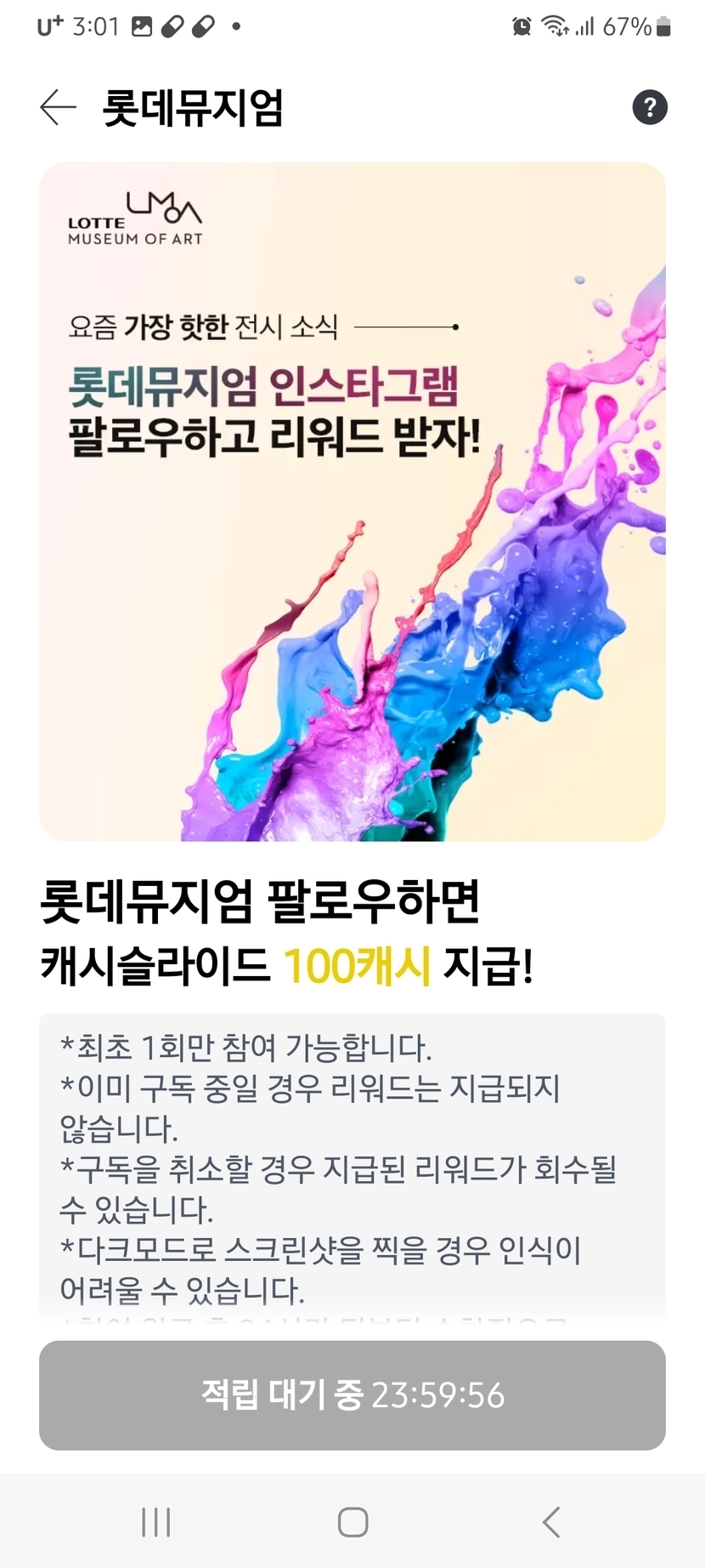롯데 뮤지엄 인스타그램 팔로우 24시간후 100