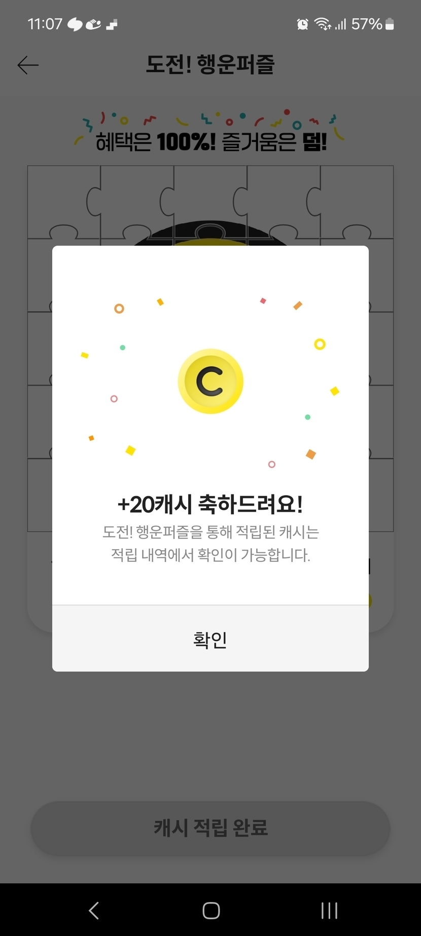7월13일 20캐시 퍼즐성공