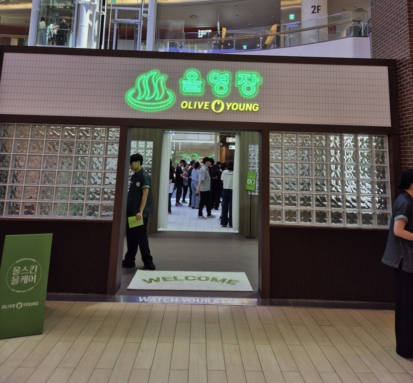 독특한 목욕탕 컨셉의 올영장 팝업스토어