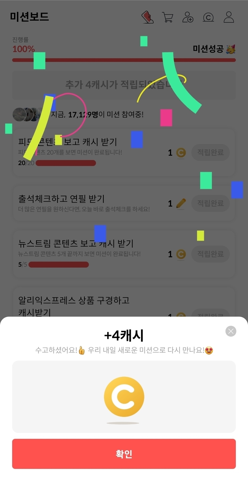 4캐시 됐어요~^^
