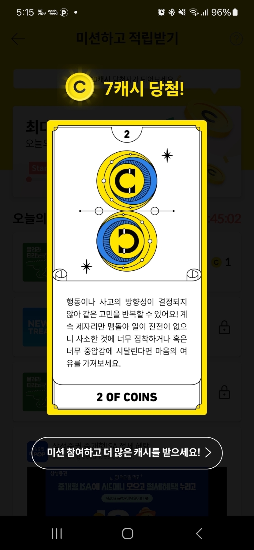 캐시슬라이드 오늘의 미션타로