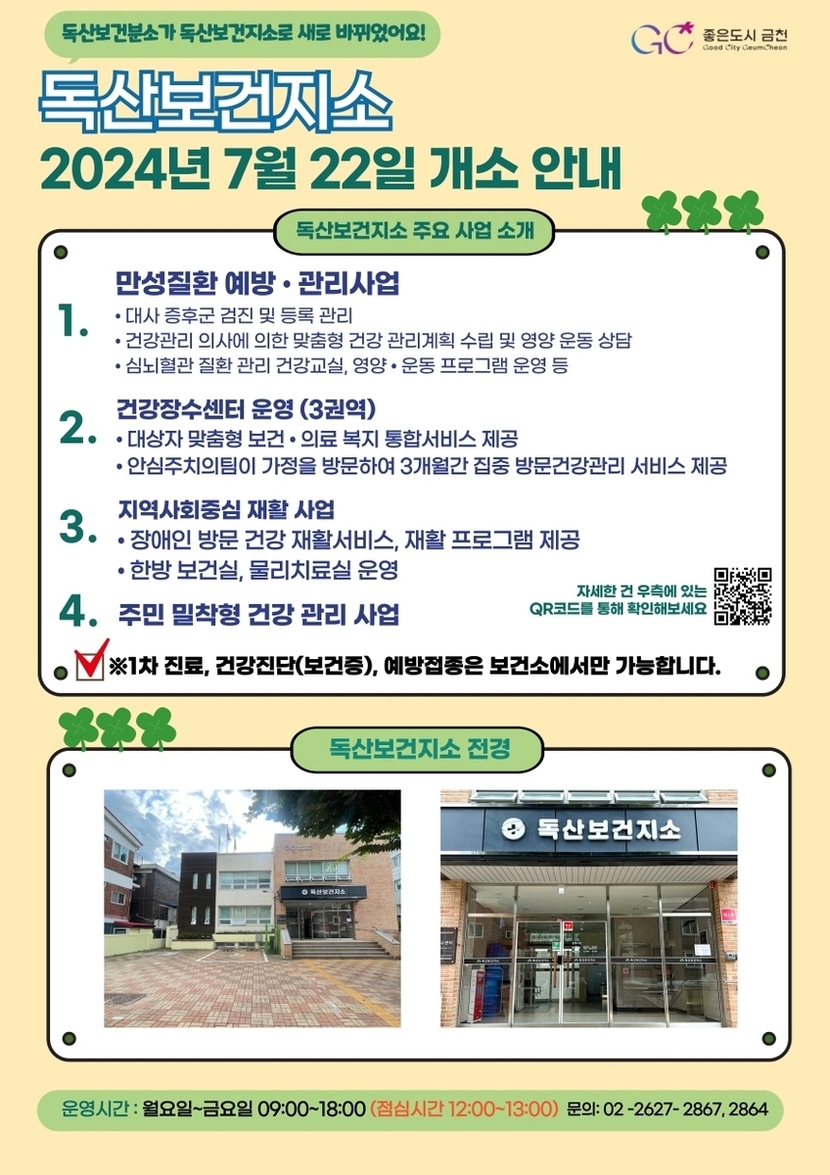 금천구 22일 독산보건지소 개소…"맞춤형 건강관리 서비스"