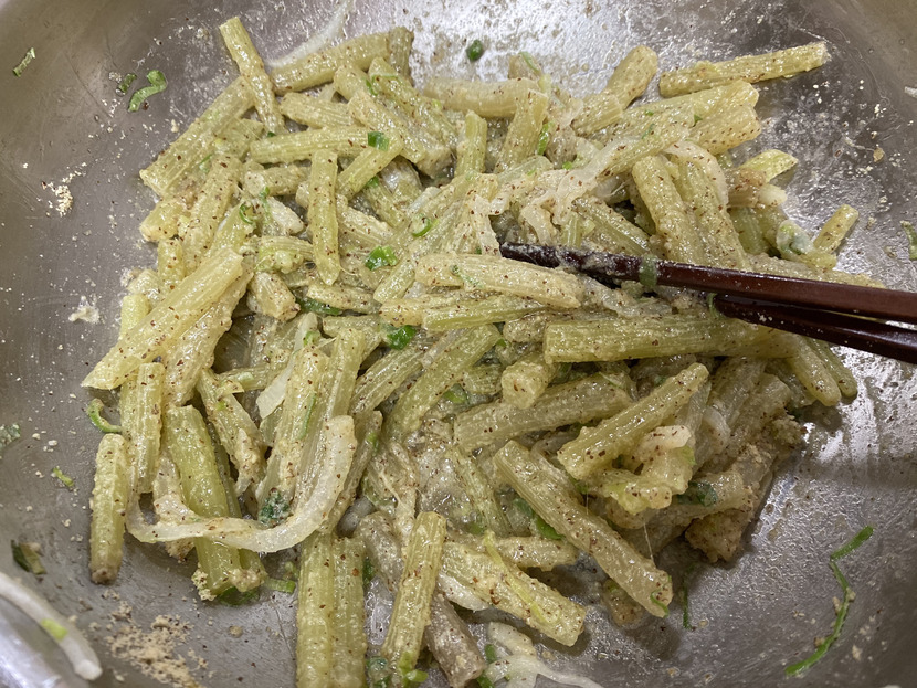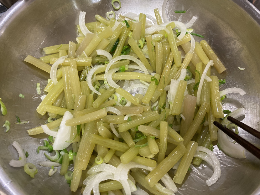 20.05.23 733 읽음 머위볶음 월화수목금토일 구독하기 13 46 콘텐츠의 수익 41 머위대 사다 볶음 만들었어요~소금물에 데치고 겉껍데기 벗겨주기양파 마늘 파도 썰어 준비하고머위대는 먹기 좋은 크기로 썰어서들기름에 볶았어요~ 소금 조금 넣고 볶다가 마지막에 들깨가루도 듬뿍 뿌려주었어요~첨에 데칠때 소금물에 데쳐서 간이 좀 되있기 때문에볶을때 간 보시고 소금을 알맞게 넣어주는게 좋을 것 같아요~ 46 0 / 300 입력