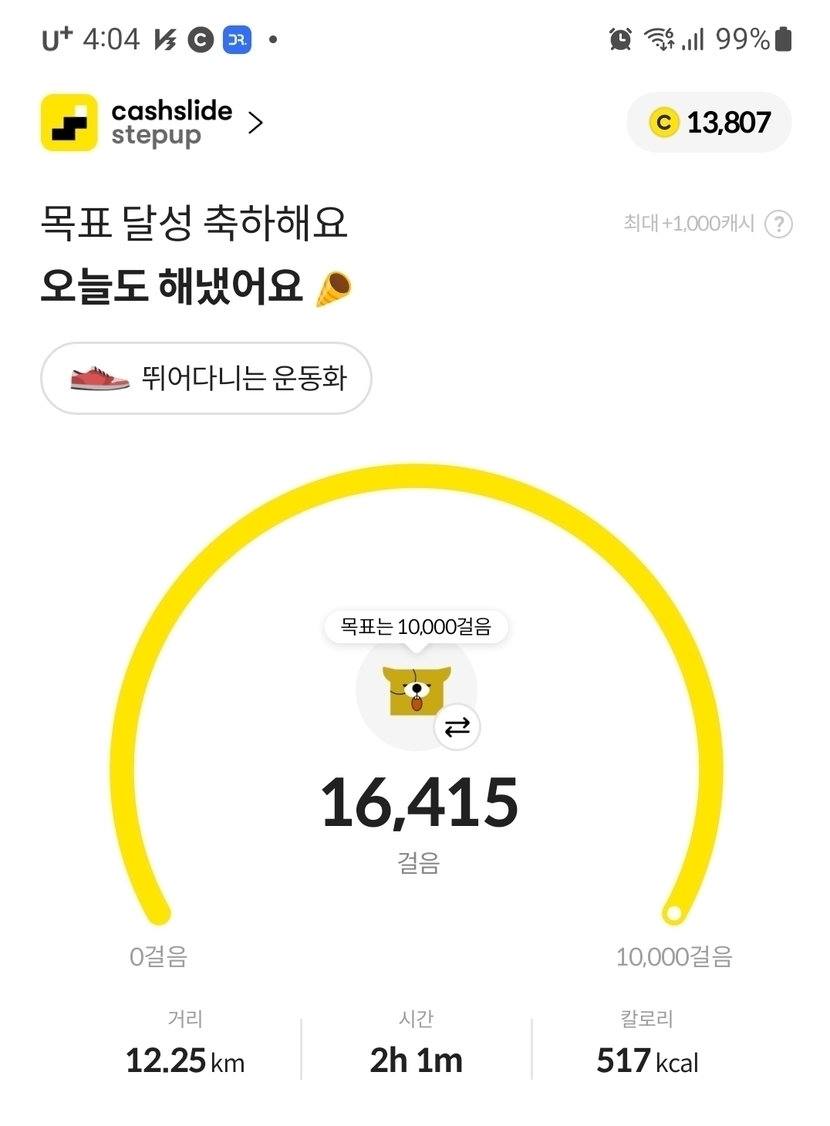 러닝6km +걷기 6.25km =12.25km