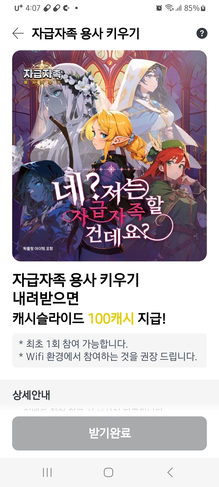 자급자족 용사키우기 내려받고 100캐시