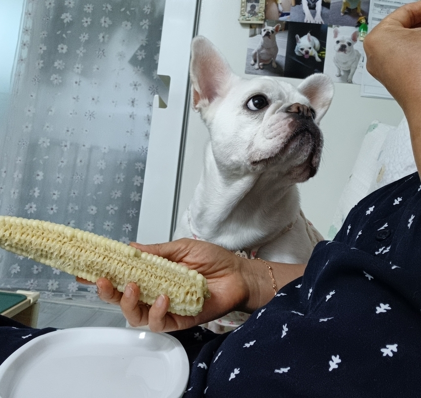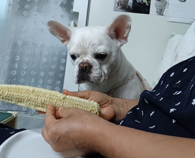 위 아래...옥수수 먹는 엄마 쳐다보기
