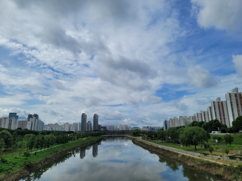 오목교에서 바라본 안양천 파란 여름하늘
