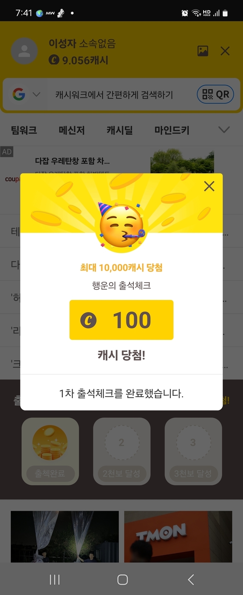 100캐시 받았어요..