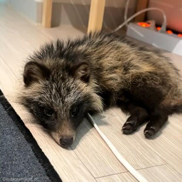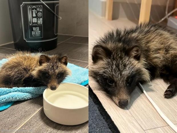 차에 치여 '낑낑'대던 새끼 너구리..외면하지 않고 집으로 데려온 사연