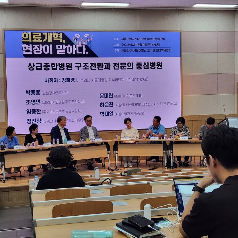 서울의대·서울대병원 교수 비상대책위원회는 1일 서울의대 융합관에서 '상급종합병원 구조전환과 전문의 중심병원'을 주제로 의료계·의료소비자·관련 전문가가 함께하는 토론회를 개최했다.