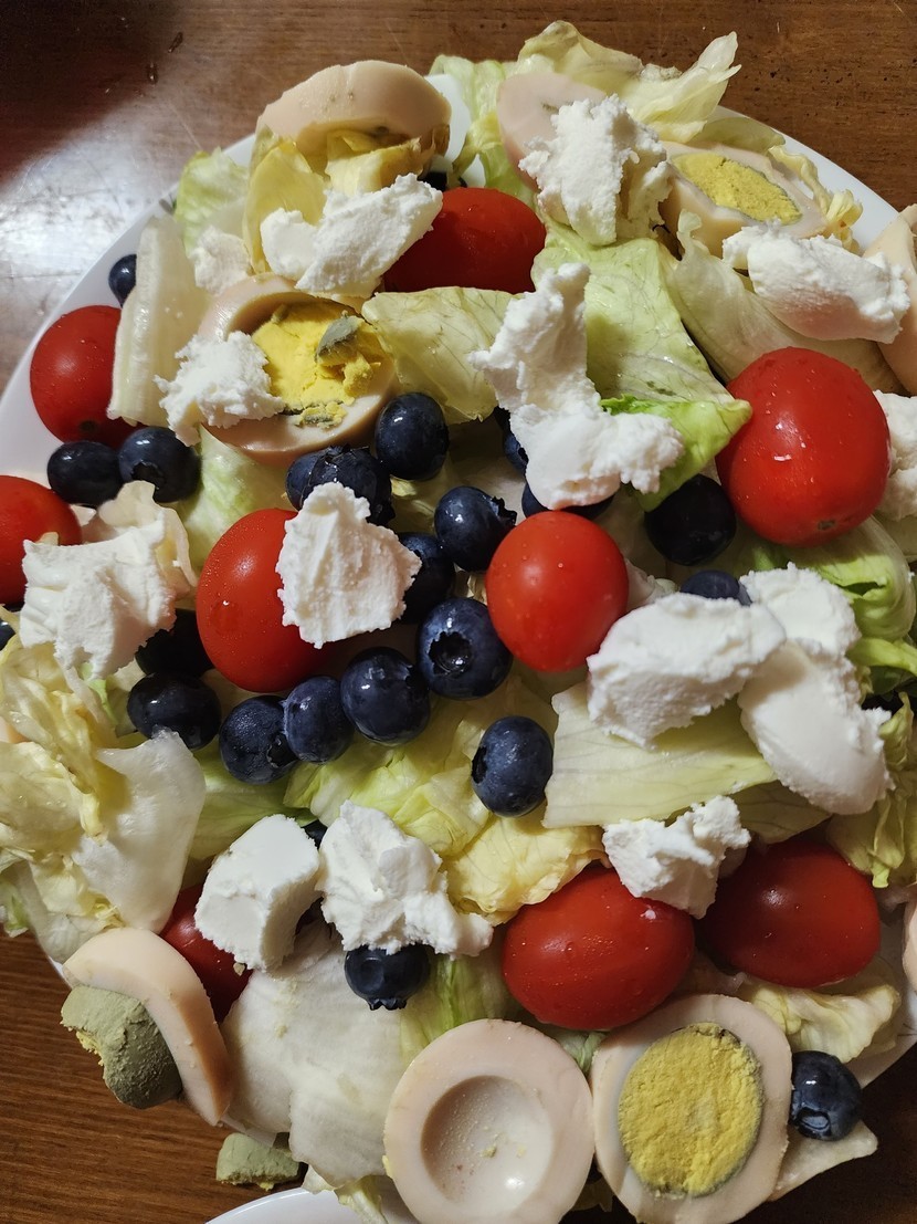 블루베리 방울토마토 양상추 구운계란 올려서