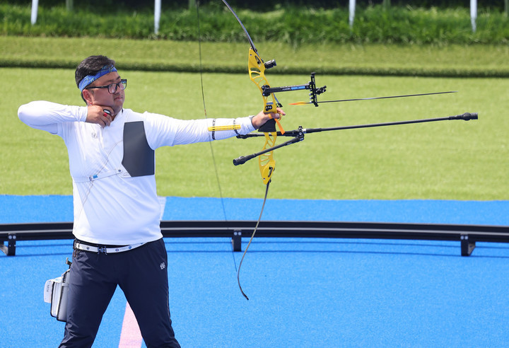 [2024파리] '심박수 100, 그래도 이긴다' 양궁 김우진, 이우석과 '집안 싸움'