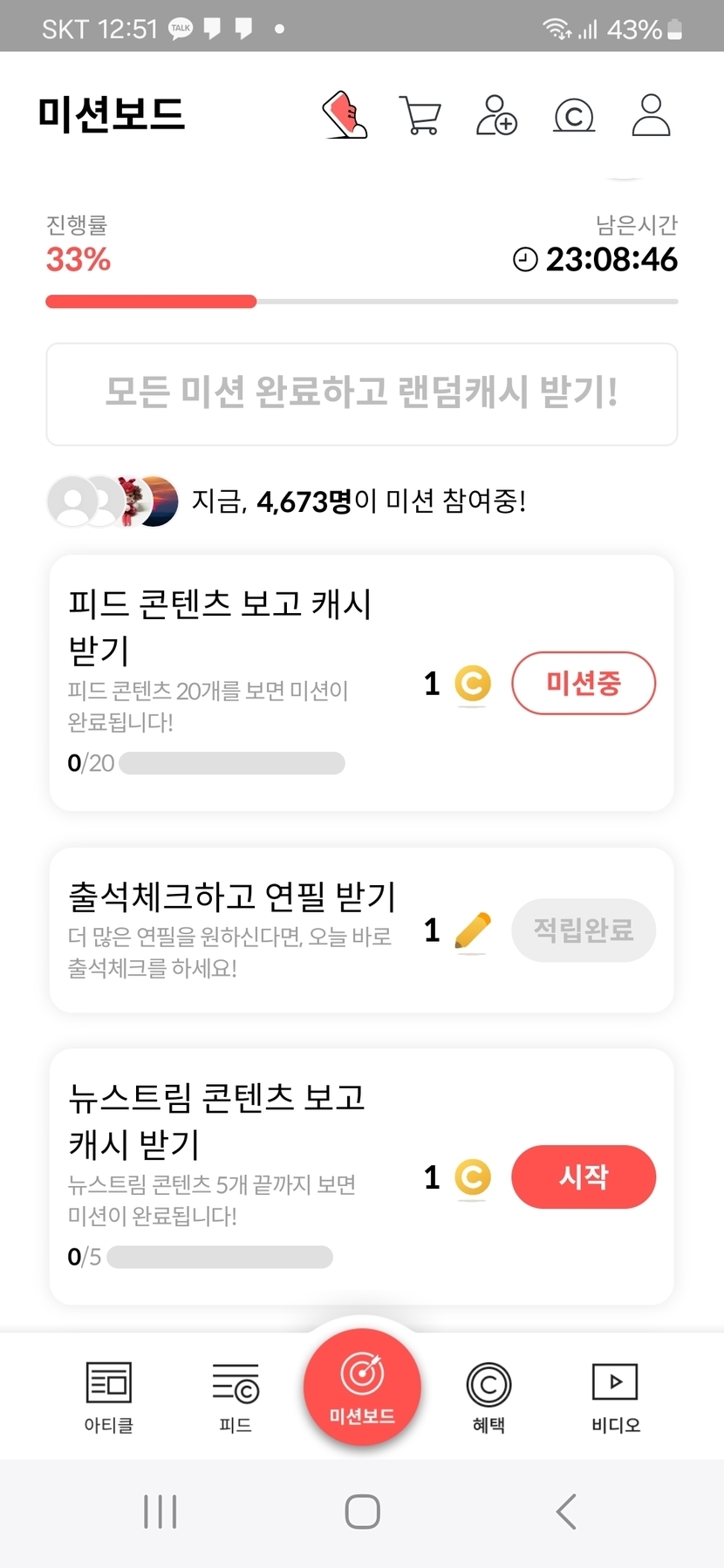 지금시각 00시51분 미션보드~미션 중 인증샷~~