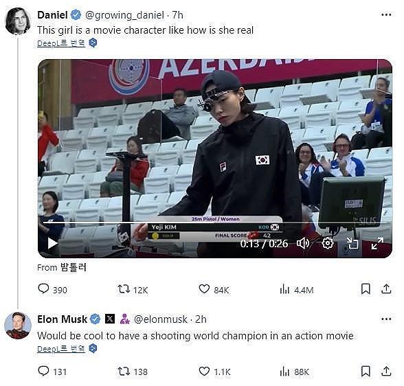 그저 자기 할 일을 마쳤다는 듯, 영화 속 '킬러'처럼 냉정한 표정으로 총기를 정리하는 모습에 엑스 소유주 머스크마저 "따로 연기할 필요가 없다. 액션 영화에 캐스팅하자"고 댓글을 남길 정도였다.