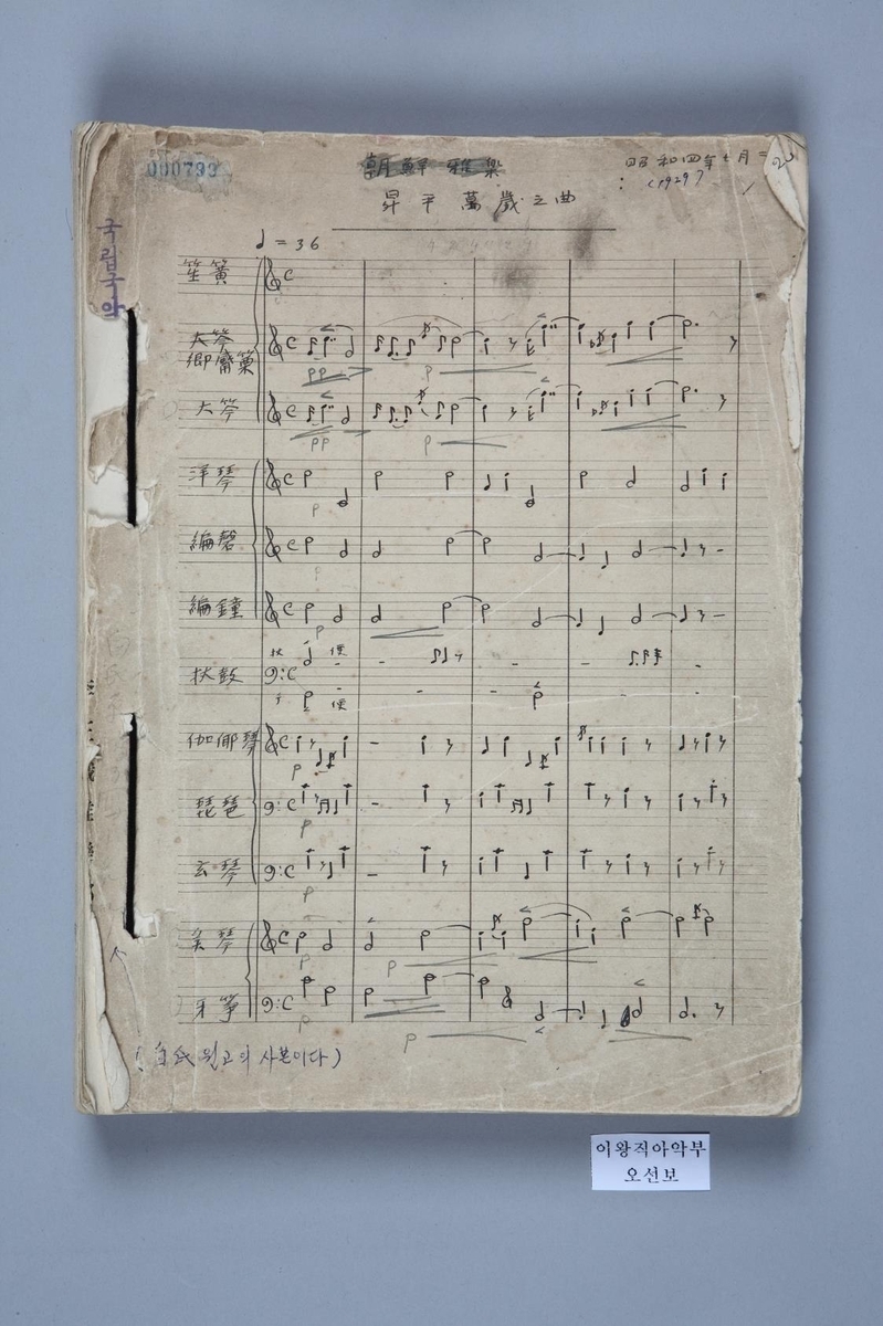전시에서는 이왕직 아악부의 두 악보를 직접 관람할 수 있다.
