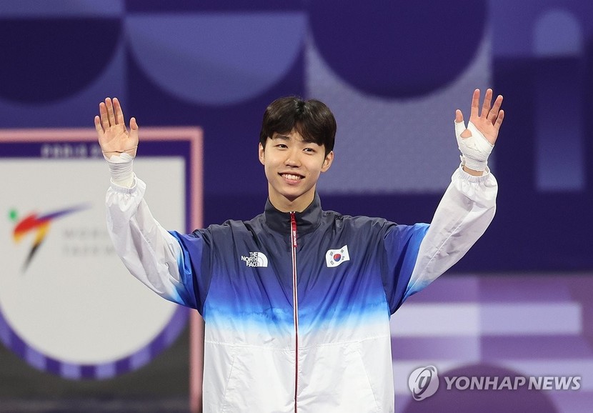 박태준은 8일(현지시간) 2024 파리 올림픽 태권도 여자 57㎏ 경기가 진행 중인 프랑스 파리의 그랑팔레에서 연합뉴스와 만나 "유진이 누나 오늘 (발차기가) 좋더라. 오전에 내가 미트를 잡았는데 (몸 상태가) 올라왔다"고 말했다.