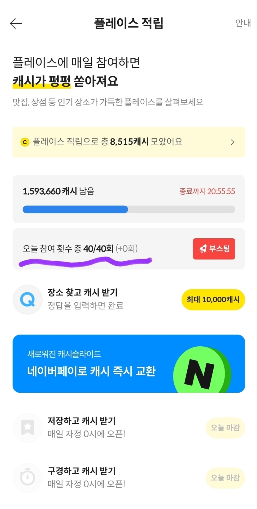플레이스 적립 완료