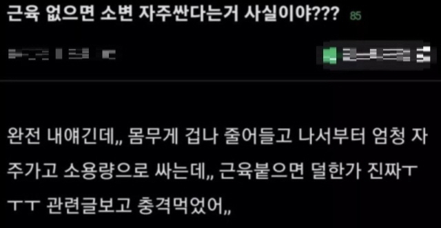 오진규 교수는 "근육량 부족이 배뇨에 미치는 영향은 적다"며 "복압을 주 기능으로 배뇨하는 사람이 복근이 부족해졌을 땐 빈뇨로 이어질 수 있다"고 했다. 복압을 주로 사용해 배뇨하는 사람으로는 ▲나이가 매우 많거나 ▲방광암 수술 등으로 인조 방광을 만들었거나 ▲목 디스크 등 신경학적 이유가 있는 등으로 방광 수축이 잘 안되는 사람이다.
