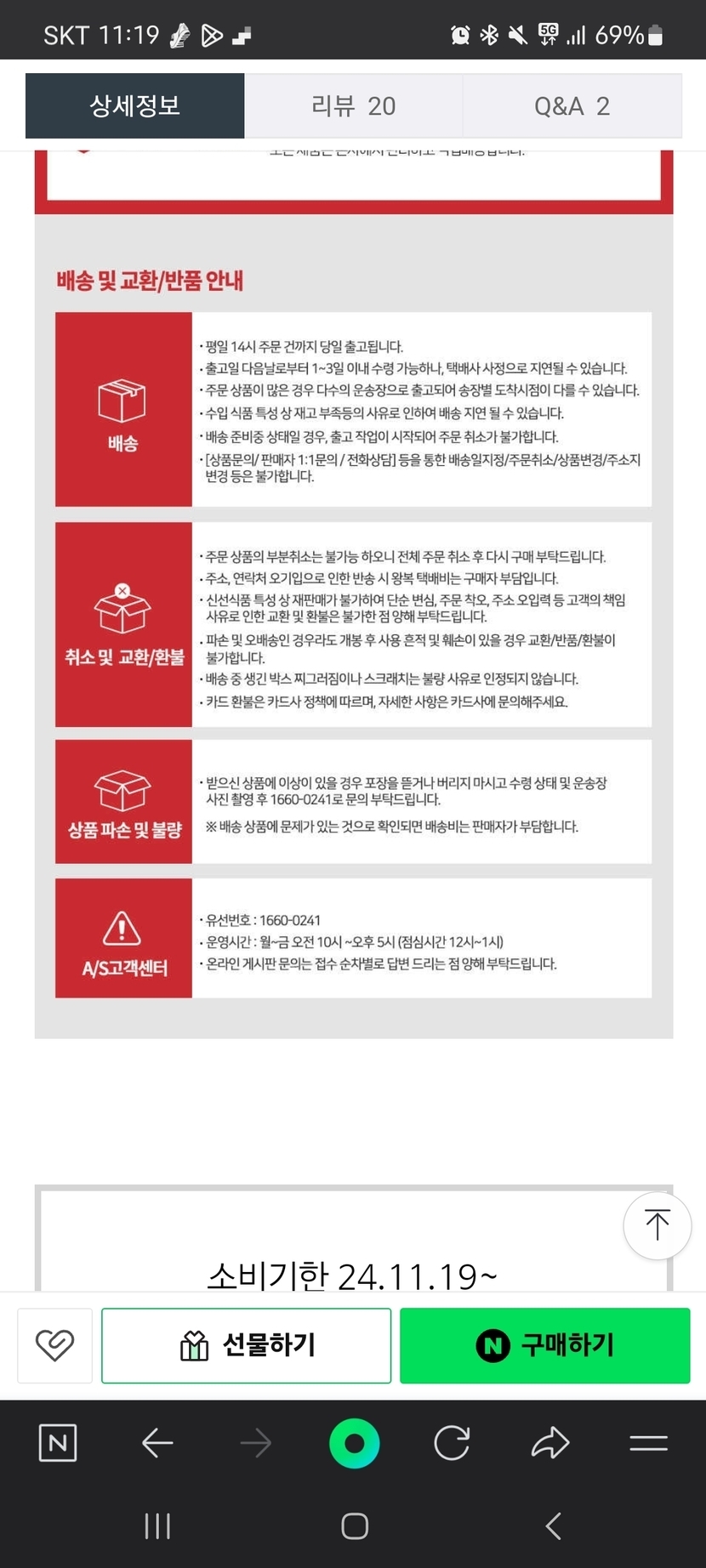 바로배송아님환불요청