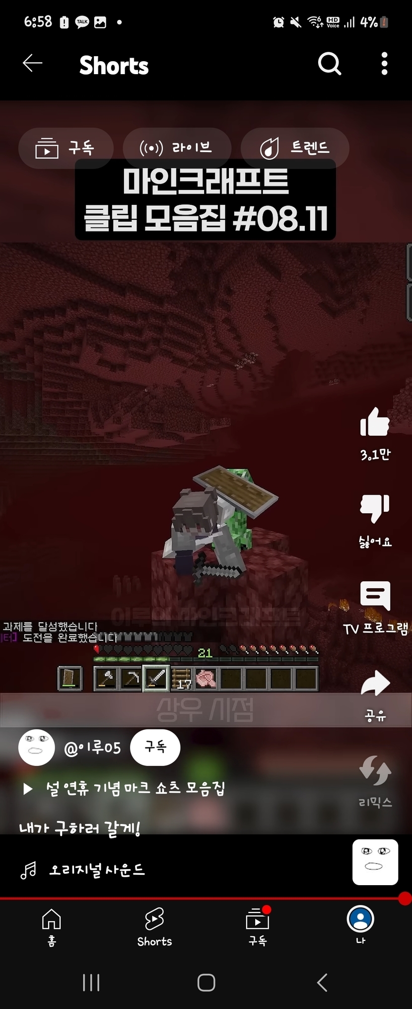 24.08.13 214 읽음 유튜브 쇼츠보다가 재밌는거 본 영상(명장면)(웃긴거도포함) yohan1105101005 구독하기 7 8 콘텐츠의 수익 7 레전드 명장면(?)(?) 8 0 / 300 입력