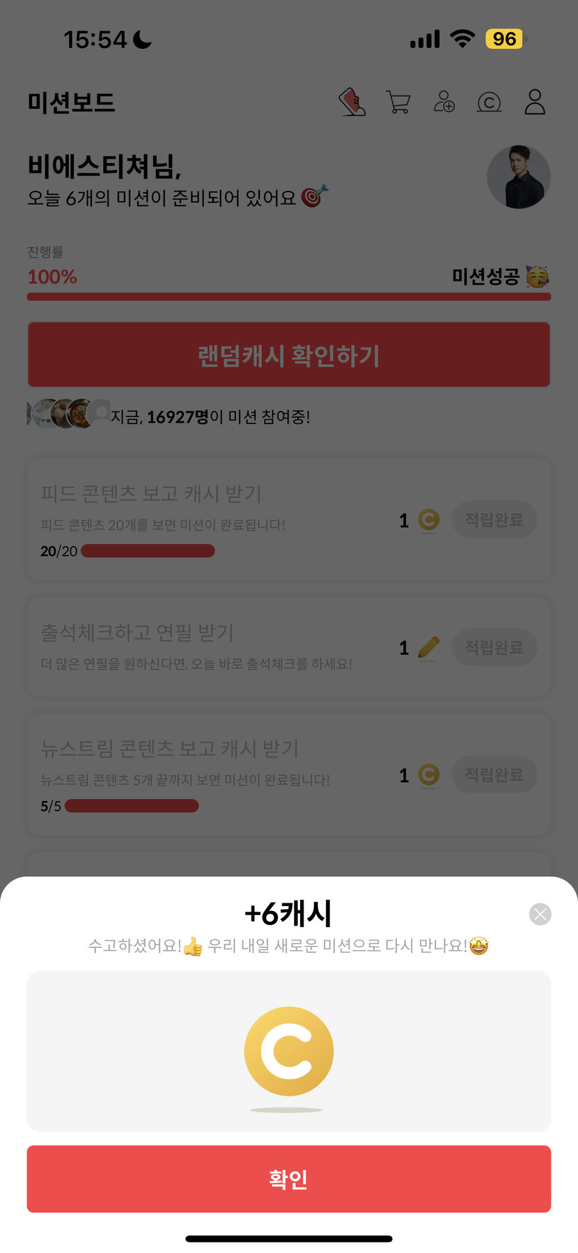 24.08.16 150 읽음 8월 16일 캐시피드 미션 완료 비에스티쳐 구독하기 14 18 콘텐츠의 수익 3 오늘은 그런대로 캐시가 나왔네요.계속 꾸준히 이렇게 나왔으면 좋겠습니다.날씨 많이 더운데 건강 조심하시고다들 해피한 오후 보내세요:) 18 0 / 300 입력