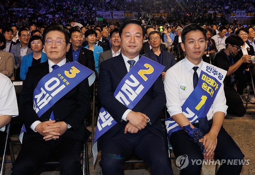 김 후보는 '이재명 대세론'에 '일극 체제 반대론'으로 균열을 내보려 했으나, 힘 한 번 제대로 써보지 못한 채 무릎을 꿇었다.