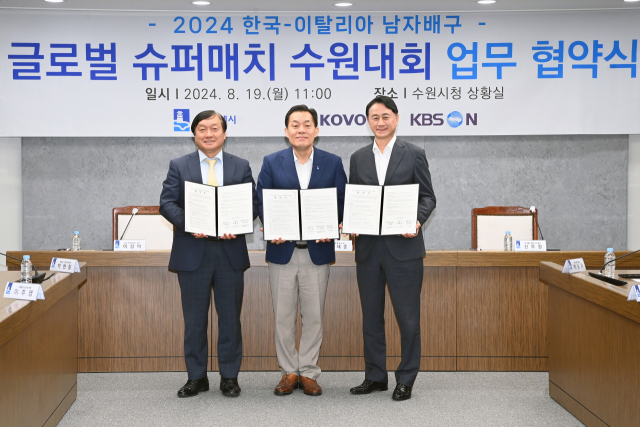 8월 19일 수원시청에서 진행된 협약식에는 한국배구연맹 신무철 사무총장과 KBS N 이강덕 대표이사, 그리고 이재준 수원시장 등 관계자들이 참석하여 2024 한국·이탈리아 글로벌 슈퍼매치를 수원시에서 개최하기로 확정지었다.