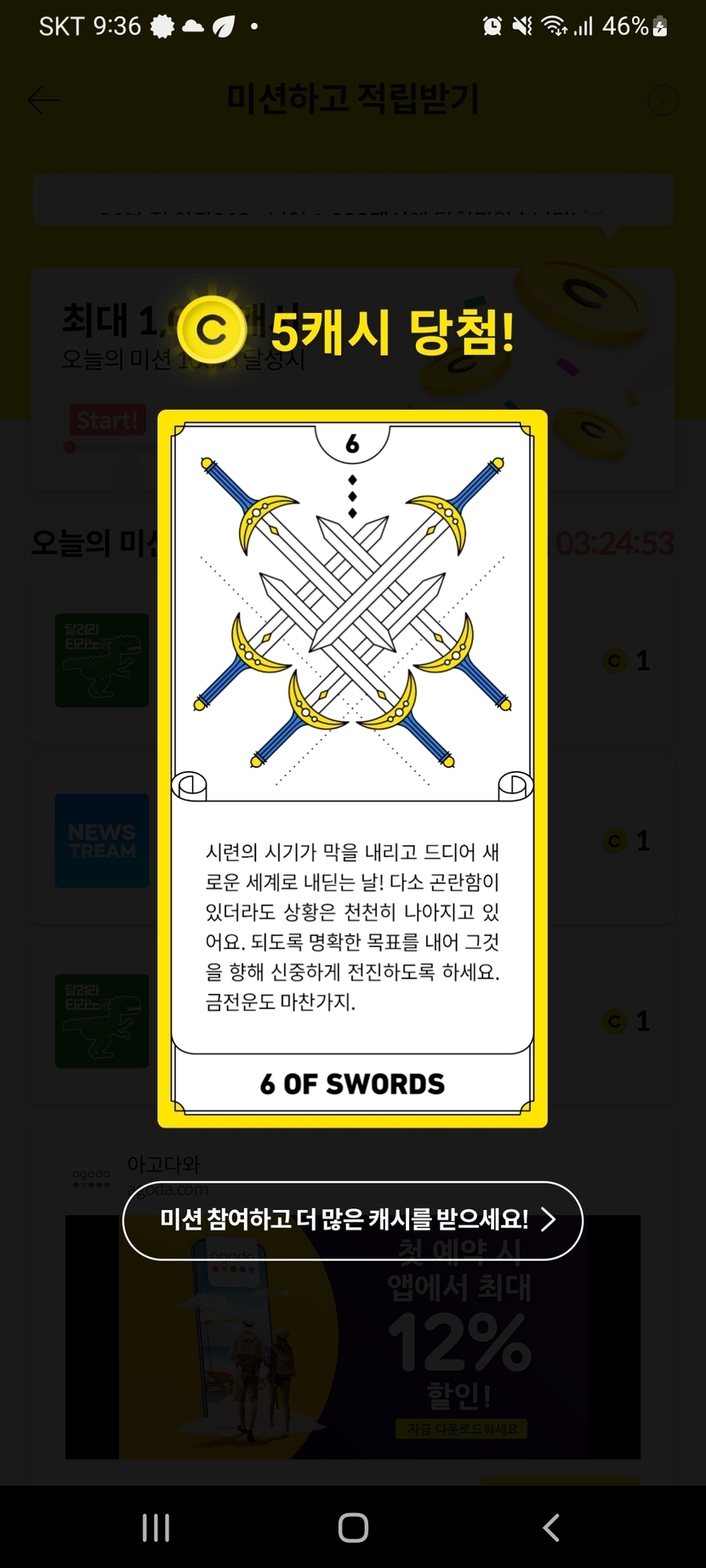 24.08.19 155 읽음 랜덤캐시,미션보드 미션완료!! swsion1078(답방) 구독하기 26 27 콘텐츠의 수익 5 8월19일 랜덤캐시 미션완료 9캐시, 미션보드 미션완료 3캐시, 타로카드는 5캐시, 비디오시청은 5캐시 받았어요. 27 0 / 300 입력
