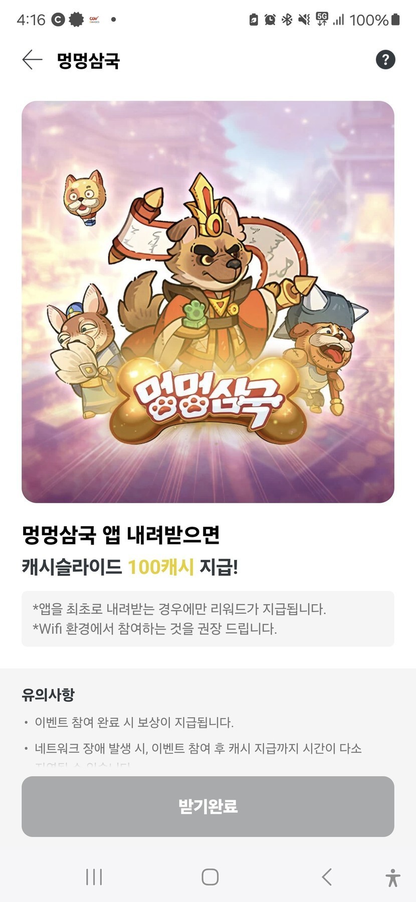 100캐시 적립 받으세요