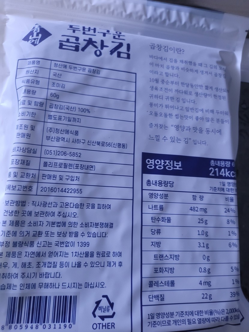 홈쇼핑에서주문햇어요 지퍼팩이라좋아요 2번구워바삭하다고하네요