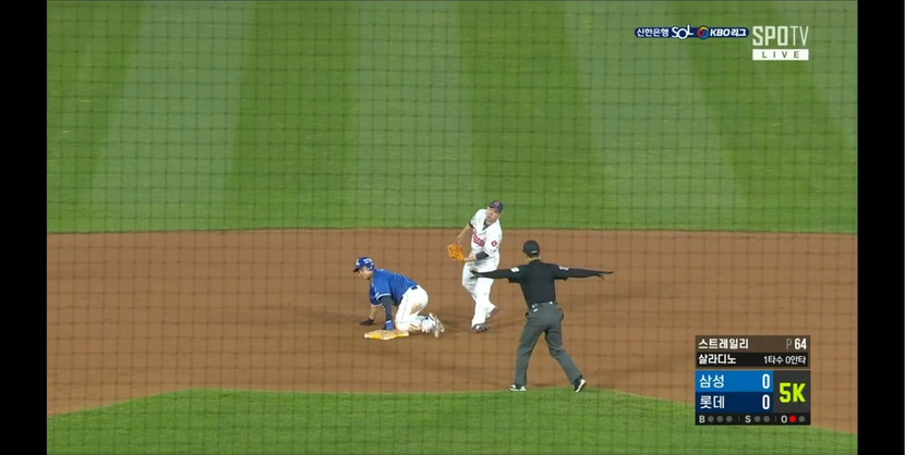 최채흥의 호투는 이어졌고 김헌곤이 게임 2번째 도루를 성공하며 분위기를 이어갔다 살라디노는 범타로 무너졌지만 박찬도가 안타치며 김헌곤을 홈으로 불러들였다 결과는 아웃 한 가지 아쉬운 점은 서서 들어오는게 아니고 태크를 피해 헤드퍼스트 슬라이딩으로 들어왔으면 손끝이 먼저 닿지 않았을까 한다계속된 무득점 경기에서 이학주의 호수비는 빛이 났다고 본다 완벽하게 올라오지 않은 타격이 아쉽지만 수비는 더욱 안정됐다고 본다살라디노의 부진은 계속되고 있다 커진 폼에서 나온 느린 반응은 안타를 파울로 만들고 파울을 헛스윙으로 만들고 있다고 본다 러프가 초반에 안 좋을 때 2군 갔다와서 조정 후에 좋아졌던 것처럼 살라디노도 2군으로 내려가는 것이 어떨까 한다