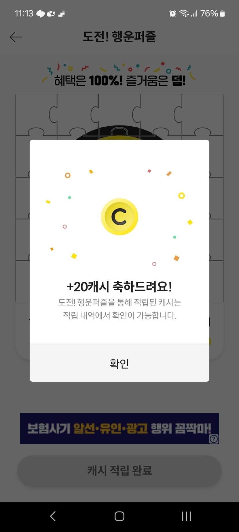 8월22일 20캐시 퍼즐성공
