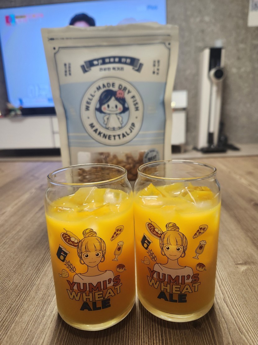 꽈배기과자와 오렌지주스 한잔