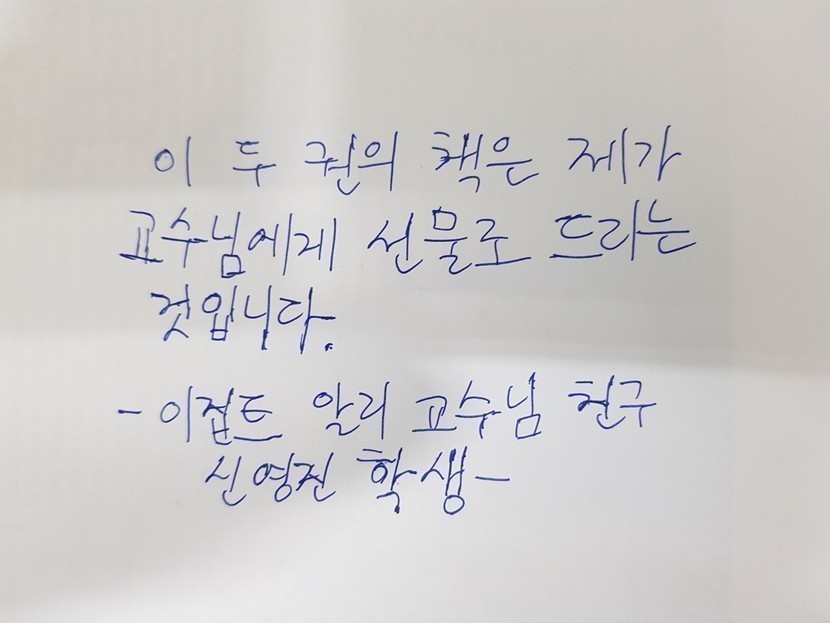 연구실 사람들도 챙기지 않는 이별 선물을.. 잘 모르는 학생에게 받았습니다.. 이 학생은 볼 기회가 없을것 같아서.. 마지막 출근하는 날.. 알리에게.. 고맙다고.. 전해달라고 해야겠네요~~